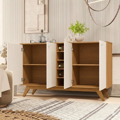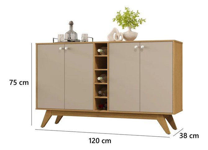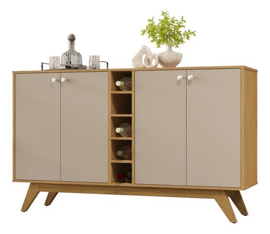 O Balcão Buffet da Sal Movelaria possui 4 Portas com uma Adega central. É produzido em MDP/MDF na escala de brilho Semi-Brilho, seu revestimento/acabamento é: Pintura UV.