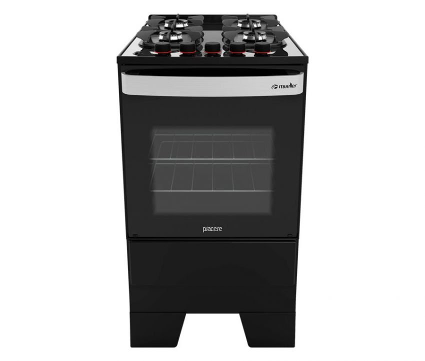 FOGÃO MUELLER 4 BOCAS PIACERE VETRO PRETO