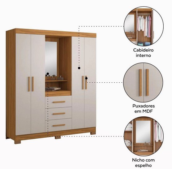 Deixe seu ambiente sempre organizado com o Roupeiro da Notável Móveis. Com o design moderno e ao mesmo tempo prático, ele complementa sua decoração, além de organizar suas roupas e acessórios através das prateleiras internas e cabideiro.