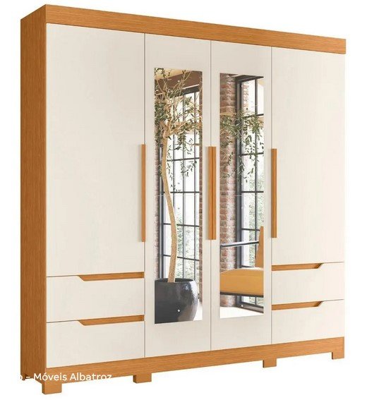 O roupeiro 4 Portas 4 Gavetas com Pés Albatroz possui um design moderno e elegante. Seu interior é composto por prateleiras e divisões que facilitam a organização de diversos itens. Esse móvel acrescenta charme e sofisticação ao ambiente do quarto.